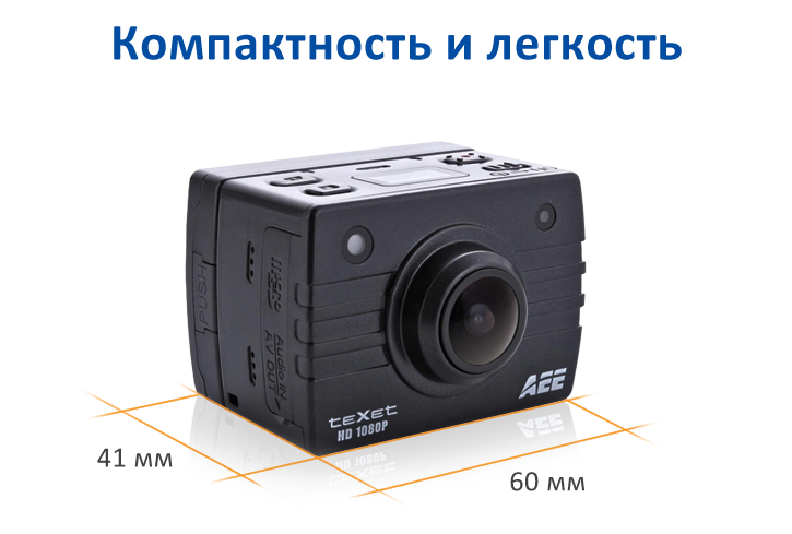 Вес экшн-камеры DVR-905S – всего 90 грамм, а размер чуть больше спичечного коробка. Но если снять цветной TFT-экран, то она становится ещё меньше!