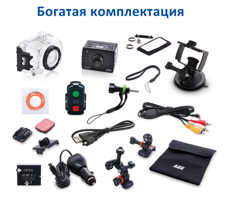 Для использования всего функционала камеры DVR-905S нет необходимости покупать дополнительные комплектующие! Помимо традиционных USB и AV кабелей, автомобильного ЗУ, в комплект входят липучки на торпеду, крепление для установки камеры в машине, изогнутое крепление на шлем и плоское крепление на сноуборд, съемная панель управления с экраном, пульт ДУ и водонепроницаемый корпус.