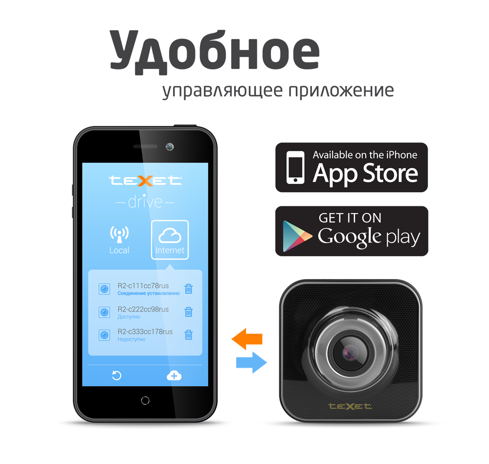 Интеграция в видеорегистраторы модуля Wi-Fi – это новый виток в развитии продуктового направления. Теперь, чтобы просмотреть видео во всех деталях на большом экране, не нужно никаких проводов! Достаточно установить удобное управляющее приложение и можно по сети Wi-Fi транслировать отснятый материал на дисплей смартфона или планшета, подключать сразу несколько камер teXet DVR-650W и одновременно выводить на экран все данные, наблюдать за происходящим в режиме LiveView*. Но и это еще не все! Больше не придется волноваться об оставленном на парковке автомобиле, просто подключитесь к облачному сервису через Интернет и оцените обстановку глазами вашего цифрового свидетеля**! В поле зрения регистратора попало что-то интересное? Вы можете тут же выложить видео на YouTube – просто скопируйте материал на смартфон по Wi-Fi и загружайте в сеть!