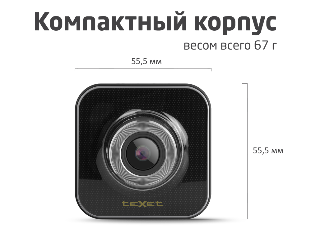 Модель teXet DVR-650W – это один из самых компактных видеорегистраторов на российском рынке, и это при просторном дисплее с диагональю 2 дюйма! Автомобильного шпиона весом всего 67 граммов можно разместить за зеркалом заднего вида. В комплекте с teXet DVR-650W идет надежное крепление.