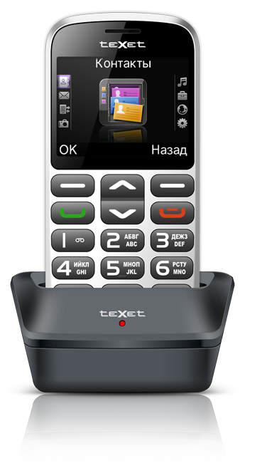 Благодаря батарее на 1500 мАч, teXet TM-B313 не требует частых подзарядок, емкость аккумулятора рассчитана на 11 часов непрерывных разговоров или до месяца работы в режиме ожидания. Восполнить ресурс АКБ очень просто с помощью специальной подставки для зарядки – не нужно возиться с проводами и разъемами, достаточно закрепить телефон на базе. Это существенно облегчает использование модели людям с ослабленным зрением, которым непросто вставить штекер в microUSB гнездо без очков.