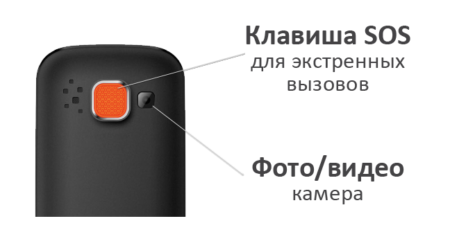 Для экстренных вызовов предусмотрена клавиша SOS, которую быстро найти на ощупь и одним нажатием отправить просьбу о помощи сразу на несколько номеров в виде звонка или SMS-сообщения. При этом одновременно может быть активирован звуковой сигнал для привлечения внимания, к примеру, прохожих на улице.