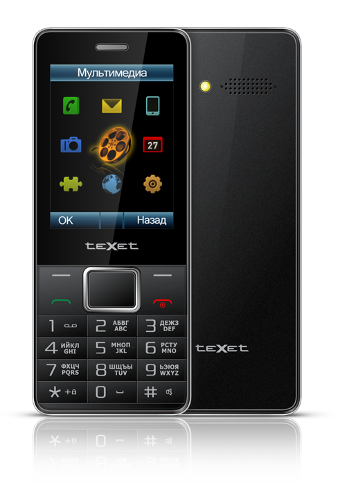 Новинка teXet имеет форму классического моноблока со скошенными углами. Корпус устройства изготовлен из прочного немаркого пластика и имеет толщину 9,9 мм. Основной цвет фронтальной и задней панелей – черный, центральная часть корпуса имеет светло-серый «металлический» оттенок, что изящно контрастирует с основной гаммой и подчеркивает акцент на дизайне устройства. Клавиатура TM-D225 имеет немного выпуклые кнопки, форма которых облегчает набор номера или сообщения. Интерфейс главного экрана и основного меню ТМ-D225 служит дополнением дизайна: пункты основного меню выполнены в виде объемных значков.