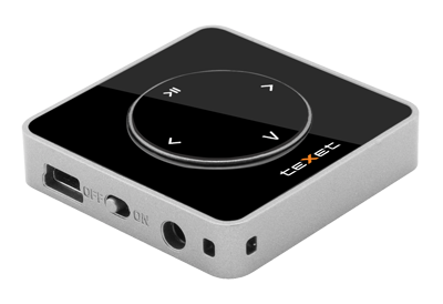 В новинке не предусмотрен экран и многочисленные элементы навигации – большую часть лицевой панели занимает круглый четырехпозиционный джойстик. Управлять teXet T-139 легко и комфортно: кнопки плеера отзываются четким характерным щелчком, а световая индикация во время работы полностью компенсирует отсутствие дисплея.