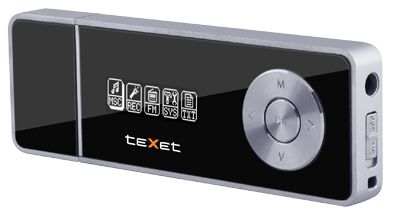 Новая модель MP3-плеера teXet T-160 выдержана в современном дизайне: глянцевый черный корпус с металлической рамкой. На правую грань вынесен единственный разъем для наушников и слайдер «Включения/Выключения». В конструкции новинки предусмотрен паз для крепления ремешка, который позволяет носить плеер, например, на шее. Плеер оснащен инверсным OLED-дисплеем разрешения 128×32 пикселей, на котором четко отображается информация. Меню состоит из пяти иконок, поддерживающих общую hi-tech стилистику teXet T-160.