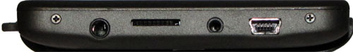 На левой грани расположен еще один слот для установки карты памяти (тут можно расположить ваши медиафайлы, а также дополнительные карты для навигатора), аудиоразъем для подключения наушников и, чуть ниже, разъем для подключения дополнительной камеры (к примеру — заднего обзора):