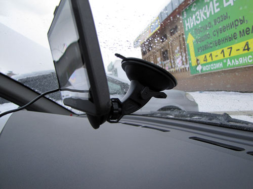 Честно говоря, штатный кронштейн неудобен. Он не предоставляет практически никакой возможности для регулировки положения устройства на лобовом стекле автомобиля. Поэтому, если ваше стекло имеет несколько бо́льший угол наклона, нежели традиционно используемый, вам придется немало постараться, чтобы найти подходящее место установки для teXet TN-515DVR.