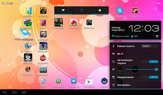 Несмотря на некоторые баги в системе, скорее всего, связанные с сырой или неоптимизированной версией ОС, получился неплохой планшет с большим экраном и Android Ice Cream Sendwich.