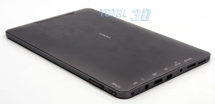 При «альбомном» расположении экрана планшета все механические элементы управления и порты оказываются под правой рукой пользователя. Сверху-справа расположена двухпозиционная «качелька» и кнопка выключения питания. На правом торце размещено все остальное: динамик, слот под карты microSD, разъем питания, интерфейсы USB и HDMI, разъемы для наушников и микрофона, встроенный микрофон.