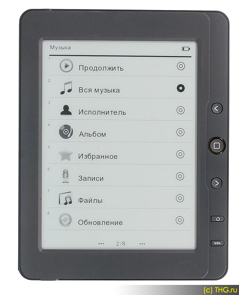 Итого, благодаря реализации музыкального проигрывателя, teXet TB-126 можно использовать в качестве полноценной замены портативному аудиоплееру с поправкой на специфичное «электронно-книжное» управление.