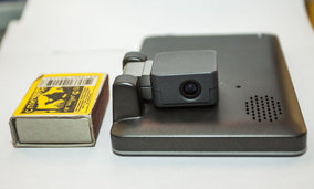 Даже в сложенным состоянии устройство оказывается физически не слишком компактным — модуль видеокамеры на шарнире выступает далеко за пределы корпуса. Впрочем, насчет компактности надо заметить, что для автомобильных гаджетов это далеко не самая важная характеристика. Автонавигатор или регистратор все время проводит на кронштейне на лобовом стекле, а в кармане или сумке, в отличие от мобильника, бывает редко - когда машину надолго оставляют на неохраняемой парковке и устройство забирают с собой, а потом приносят обратно. Поэтому, как я говорил уже не раз, тут нет смысла в рассуждениях о компактности и удобстве ношения, и те лишние полтора сантиметра, которые добавили в толщине «525-му», никакой практической роли не играют.