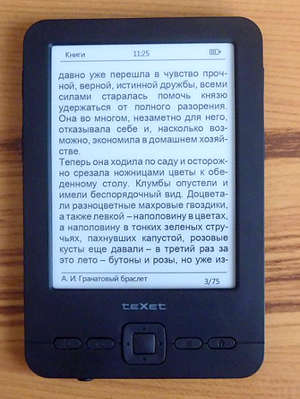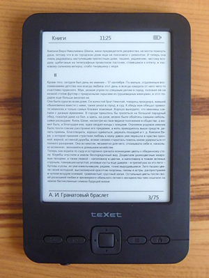Книги. В устройство изначально загружена мини-библиотека русской классики в нескольких форматах – для пущей наглядности универсальности teXet TB-436.