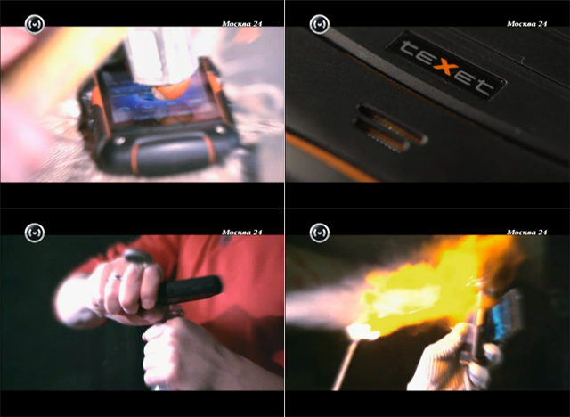 «Если вы любитель активного отдыха или сотрудник опасного производства или же вы просто часто роняете телефон, то стоит обратить внимание на смартфоны для экстремальных условий», – именно такие устройства проверили в программе «Цифра» канала Москва-24, предложив несколько испытаний участникам теста. Естественно, что бронированные корпуса проверяли на прочность и пока конкурентов спускали со ступенек и подвергали сценарию «выпадение из кармана», на дисплее teXet TM-3200R молотком кололи фундук. «Живой! Работает! Можно орехи колоть… Клево!» – констатирует ведущий программы.