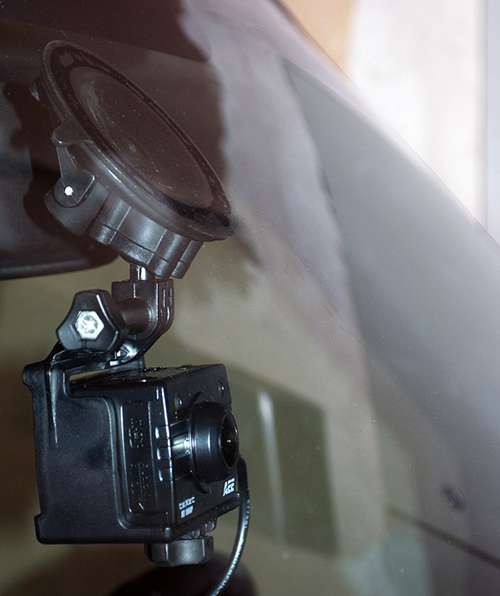 С точки зрения крепления к стеклу, кронштейн совершенно привычный, поэтому никаких трудностей с его установкой на лобовое стекло не возникло. Шаровый шарнир кронштейна «по заводу» затянут с вполне адекватной жесткостью: вращается без большого усилия, от тряски не сбивается. Второй шарнир, регулирующий угол наклона оптической оси объектива по отношению к поверхности дороги, затягивается пользователем самостоятельно — и с ним тоже никаких проблем не возникло.
