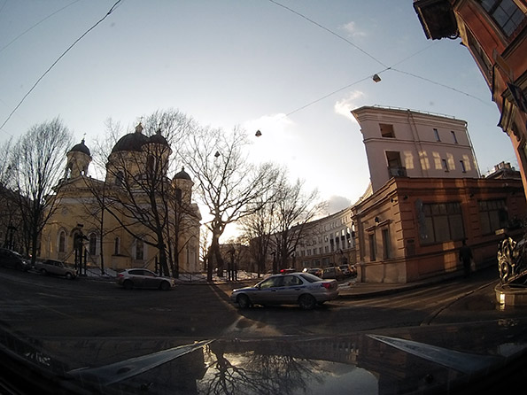 В качестве образца дневной записи мы использовали видеофрагмент снятый в разрешении 1920×1080, что логично: это самый качественный режим для данного устройства. С цветопередачей все неплохо (для видеорегистратора), с четкостью по углам тоже все в норме. Даже, мы бы сказали, неожиданно неплохо для такого широкоугольного «рыбьего глаза». Дневная съемка по пятибалльной шкале вполне достойна твердой четверки, а учитывая большой угол обзора объектива — может быть, даже четверки с плюсом. Уж и не знаем, как устройство поведет себя в роли экстрим-камеры, но на дороге его «свидетельских показаний» скорее всего хватит практически во всех случаях.