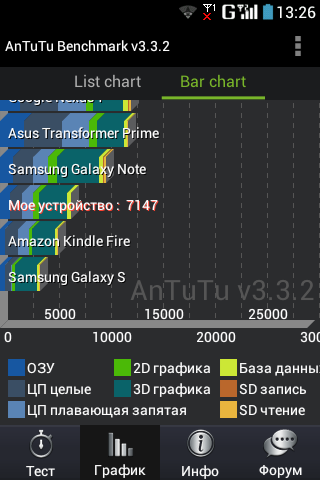 Сердцем нашего не убойного друга является 2-ядерный процессор Qualcomm MSM8225, работающий на частоте 1 ГГц, за видео отвечает Adreno 203, вкупе с 768 МБ оперативной памяти телефон демонстрирует хорошие показатели производительности в синтетических тестах. С 3D играми телефон ведет себя шустро, как и ожидалось. Вот только особого комфорта от игры на малом дисплее ждать бессмысленно.