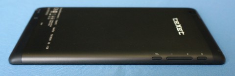 Снизу мы не увидим сенсорных клавиш – они сделаны частью программной оболочки в виде трех иконок в нижней части дисплея. Вполне понятное решение для планшета – иконки меняют расположение вместе со сменой ориентации дисплея. На левому боку планшета, в верхней его части (опять же если держать планшет вертикально) находятся три кнопки – кнопка включения, кнопка регулировки громкости и кнопка «домой». Их расположение вполне удобно, если держать планшет одной рукой.