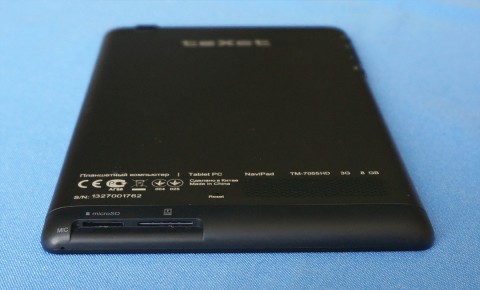 teXet TM-7055HD 3G  достаточно тонкий – его толщина всего 8,9 мм. Устройство собрано очень добротно, ни о каких скрипах и люфтах нет и речи.