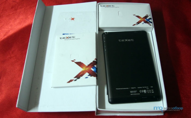 С момента последнего тестирования продуктов teXet поменялось оформление упаковки, оно стало более сдержанным и гармоничным. А в случае с teXet TM-7045 3G еще к тому же используются и необычные габариты. Она непривычно вытянута по длине. В откидной крышке используется магнитная защелка.