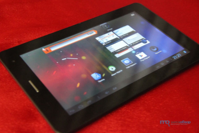 Используется TFT TN матрица с диагональю 7 дюймов и разрешением 1024х600 пикселей. Этого разрешения с лихвой хватает на то, чтобы не видеть зернистость и артефакты на дисплее. Сам экран обеспечивает до пяти одновременных прикосновений, полная поддержка жестов.