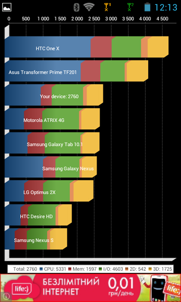 Программная часть представлена операционной системой Android 4.0.4 Ice Cream Sandwich с небольшими доработками. В частности, в панели уведомлений есть менеджер задач. Правда, в нем отображаются далеко не все запущенные процессоры. Еще выделю набор «околоспортивных» обоев, файловый менеджер и другую «звонилку».