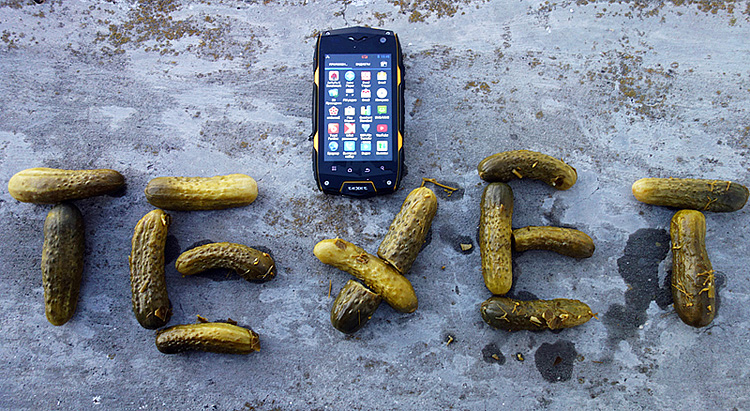 Итак, тест первый. Закатываем teXet X-driver в банку с солеными огурцами на полтора часа. Периодически звоним на него и наблюдаем вот такую картину. Аппарат сие испытание с честью выдержал.