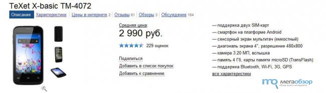 Смартфон teXet X-basic эксклюзивно представлен в магазинах сети М.Видео по цене 2990 рублей.