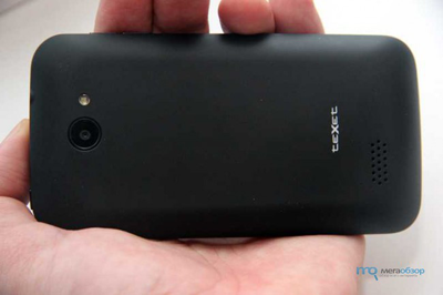 teXet X-basic можно купить либо в черном, либо в белом варианте, к нам же поступил в черном обличии. На передней части устройства расположились стандартные сенсорные кнопки, микрофон, фронтальная камера и датчик, динамик.