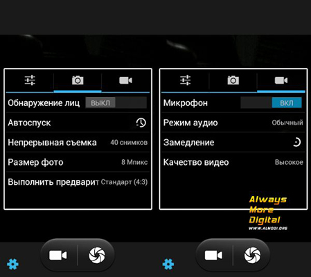 Увидели мы здесь обновленный интерфейс приложения камеры. Мы видим новое меню настроек, разделенных на три вкладки: общие, фото и видео. Можно включить сохранение геотегов, изменить экспозицию, режим съемки, баланс белого – стандартные фичи, но кроме этого есть и подавление мерцания, что мы нечасто видим. В режиме фото телефон может распознавать лица, режим непрерывной съемки сможет сделать подряд аж 40 снимков, настройки видео позволяют включить замедленную съемку, включить или отключить звук.