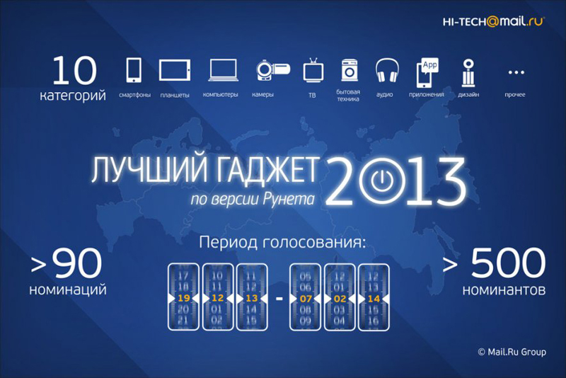Под конец декабря портал Hi-Tech Mail.Ru традиционно запустил голосование за лучший гаджет по версии Рунета, где каждый может принять участие в выборе ярких и полюбившихся новинок уходящего года.