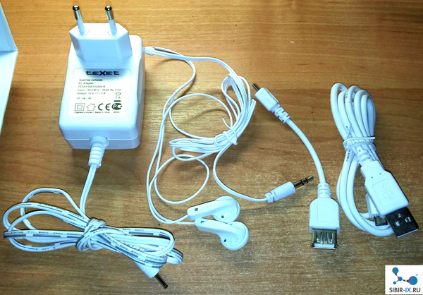 Комплектацию teXet TM-9750HD можно назвать богатой. Производитель оснастил пользователей не только планшетным компьютером со стандартными зарядным устройством и USB-кабелем, но и OTG-кабелем, стереонаушниками и удобным чехлом. Естественно не обошлось без руководства по эксплуатации и гарантийного талона.
