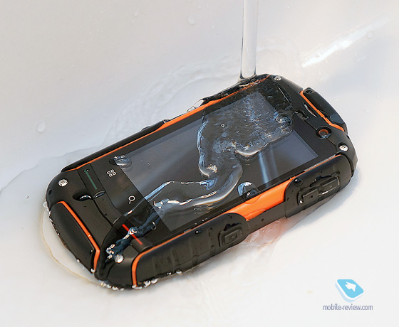 Еще раз напомню, что эта модель выполнена по классу защиты IP67, т.е. телефон может быть погружен в воду до одного метра на непродолжительное время, а также ему не будут страшны грязь и пыль.
