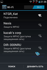 Аппарат teXet TM-3204R работает в сотовых сетях 2G (GSM/GPRS/EDGE, 850/900/1800/1900 МГц) и 3G (900/1900/2100 МГц). В этом случае одна «симка» функционирует только в 2G, другая – в 2G или в 3G. В наличии Bluetooth версии 3.0 (EDR) для передачи файлов и речи. Присутствует беспроводная связь Wi-Fi IEEE 802.11 b/g/n. Аппарат, естественно, может быть задействован в качестве точки доступа (WiFi Hotspot) или модема. В настройках этот пункт значится как «Режим модема». Есть WiFi Direct.