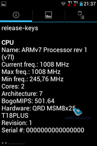 Процессор: два ядра, 1200 МГц, Qualcomm MSM8225