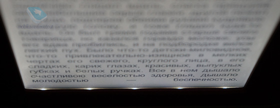 В этой модели установлен экран, диагональ которого составляет 6 дюймов. Физический размер – 90х121 мм, рамка слева – 13 мм, справа – 21 мм, сверху и снизу – по 18 мм. Сверху дисплей защищен прочным пластиком, нижний слой – стекло, а между ними находятся электронные чернила E-Ink Pearl HD. Разрешение для этого поколения стандартное – 1024х758 пикселей, плотность – 212 пикселей на дюйм, градация серого – 16, контрастность – 12:1 (например, у VizPlex соотношение контраста – 7:1). Фон немного сероватый, черный цвет относительно неплохой.