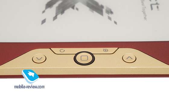 Справа есть кнопка «Ок», или вызов меню в режиме чтения книг. Она круглая, нажимается легко, присутствует тихий звук «клика». Слева внизу – «Назад», слева вверху – увеличение размера шрифта и активация подсветки (длительное нажатие).