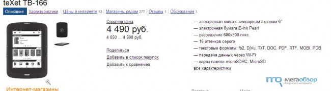 Главная Новости «Выбор Редакции МегаОбзор» пал на ридер teXet TB-166