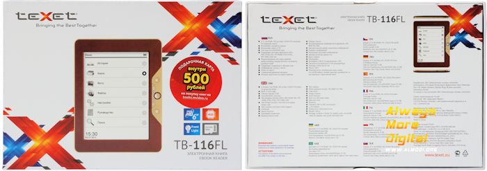 Модель teXet TB-116FL сочетает в себе хороший экран и встроенную подсветку, а также очень демократичную цену. По сравнению с прошлой модификацией (TB-116), книжка выделяется экраном с повышенным разрешением, удвоенной памятью.