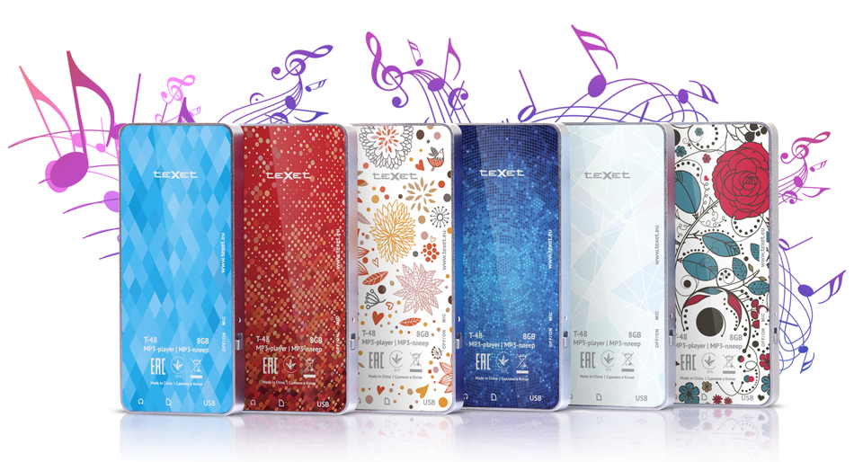 teXet объявляет о старте продаж обновленного MP3-плеера teXet T-48, который полностью повторяет стильный дизайн модели T-470B/C/D/F/R/S, но в качестве преимущества получил современный процессор для улучшенного звучания и более продолжительной работы без подзарядки. Уникальные технологии декорирования цифровой техники позволили воплотить в музыкальной новинке легкость, креативность и динамичность, свойственные молодым людям.