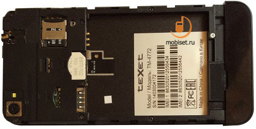 Под крышкой – место для установки аккумулятора, а также два слота для SIM-карт и один – для microSD.