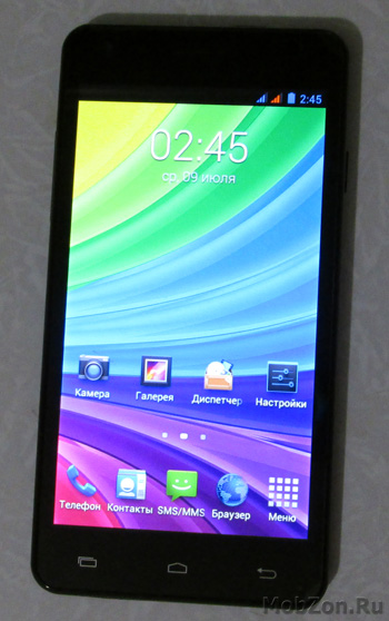 Матрица выполнена по технологии IPS, поэтому при наклоне смартфона в любую сторону цвета не инвертируются, только лишь немного падает яркость. Сенсорный слой дисплея, естественно, емкостного типа, отрабатывает пять одновременных касания. Чувствительность очень хорошая.