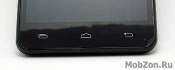 Под дисплеем расположены сенсорные Android-кнопки: «Назад», «Домой», «Меню» без подсветки.