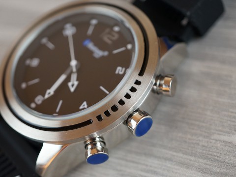 Органы управления часами – две кнопки и колесико перевода стрелок, – расположены на правом торце, и дизайн у них одинаковый. Верхняя кнопка отвечает за синхронизацию со смартфоном посредством Bluetooth, а нижняя может выполнять несколько различных функций, в зависимости от ситуации и настроек софта.