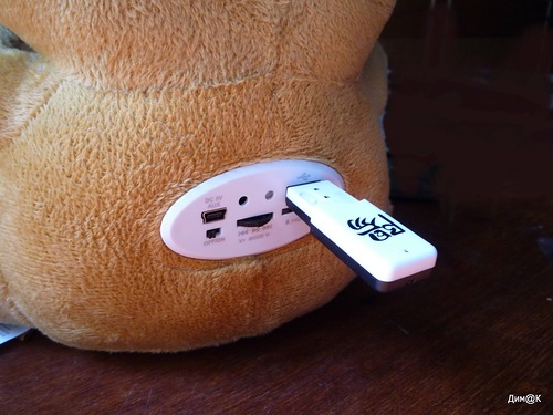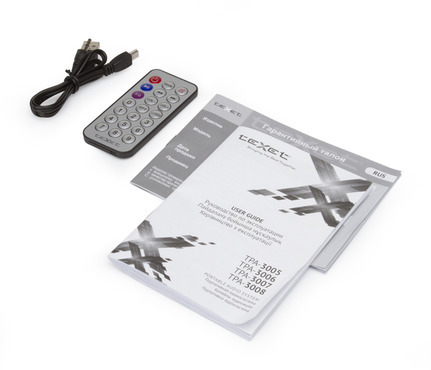 Открыв упаковку, обнаруживаем вместе с мишкой остальную комплектацию: универсальный кабель, пульт дистанционного управления, руководство пользователя и гарантийный талон.