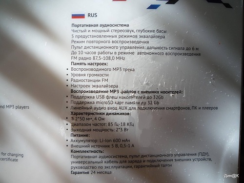 -  выходная мощность: 2, 3 Вт (суммарная равна 6 Вт);