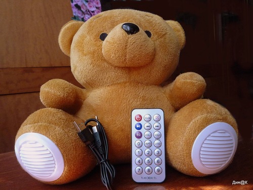Интересная аудиосистема, совместившая в себе симпатичную плюшевую игрушку и разнообразные способы прослушивания музыки: с карты памяти, флешки, внешнего устройства и радиоприtмника, а встроенный аккумулятор позволит не зависеть от розетки и слушать музыку в «мобильном режиме». Пульт дистанционного управления здесь оказался очень кстати, и не только потому, что позволяет управлять колонкой на расстоянии, но еще и потому, что с его помощью намного удобнее управлять воспроизведением, чем колесиком на задней панели, на котором закреплено столько самых разных функций, что немудрено и запутаться! Получилась довольно интересная и забавная колонка, способная стать не только уютным дополнением к любому интерьеру, но и оригинальным подарком любимой девушке, сестре или брату-меломану! Моя оценка – 9 баллов.