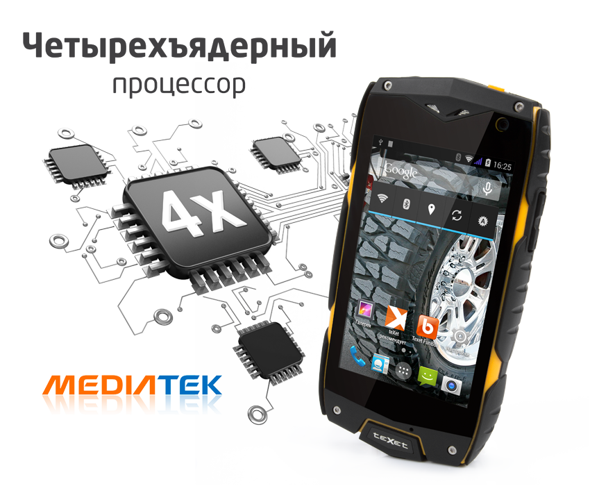 Долгое время прочность конструкции и мощная «начинка» были взаимоисключающими понятиями. Но нам удалось создать сбалансированный защищенный смартфон X-driver Quad, который отвечает всем требованиям! Новинка построена на базе четырехъядерного процессора MTK 6582 с тактовой частотой 1.3 ГГц. Резерва оперативной памяти в 1 ГБ вполне достаточно для одновременной работы нескольких приложений и современных 3D-игр. X-driver Quad располагает коммуникационными модулями 3G и WiFi, что делает ресурсы всемирной сети максимально доступными. Благодаря встроенному GPS-приемнику смартфон удобно использовать в качестве навигатора в автомобиле или походе.