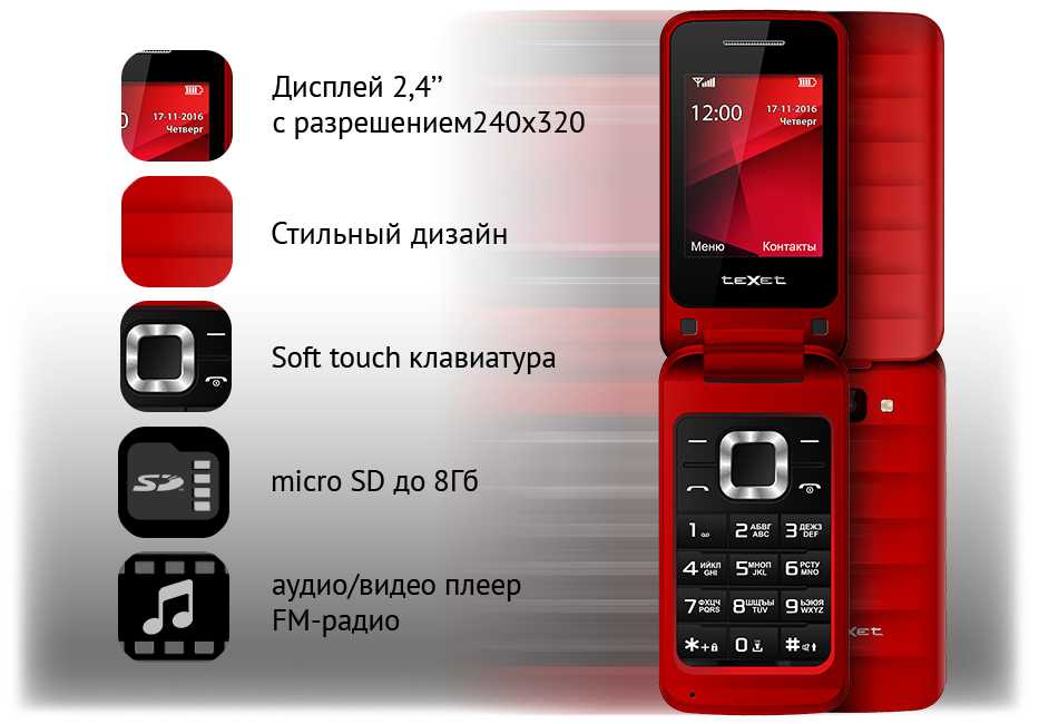 При разработке модели дизайнеры teXet уделили особое внимание цветографической концепции новинки и предложили три модных решения: золотистый, алый и серебристый.