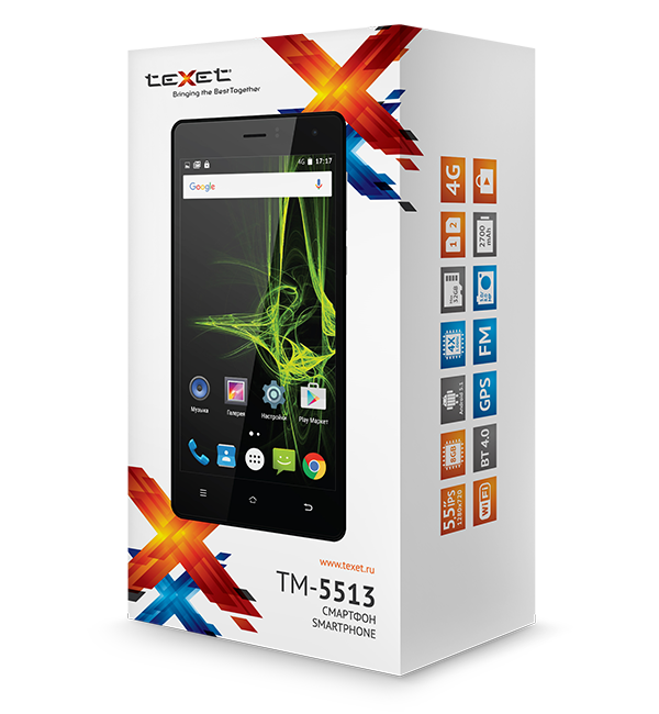 Компания позиционирует teXet TM-5513 как смартфон начального уровня с большим экраном. Устройство получило 5,5-дюймовый дисплей (1280х720 пикселей) типа IPS, что гарантирует широкие углы обзора и неплохую детализацию изображения. За производительность отвечает четырехъядерный процессор