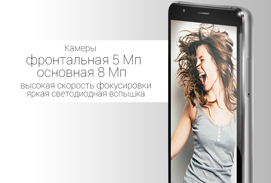 Модель Х-омега оснащена двумя камерами: фронтальной 5 Мп и основной 8 Мп с автофокусом и вспышкой. Быстрый отклик камеры, высокая скорость фокусировки, яркая светодиодная вспышка помогут запечатлеть уникальные кадры вашей жизни. А фронтальная камера с разрешением 5 МП поможет в создании впечатляющих селфи.